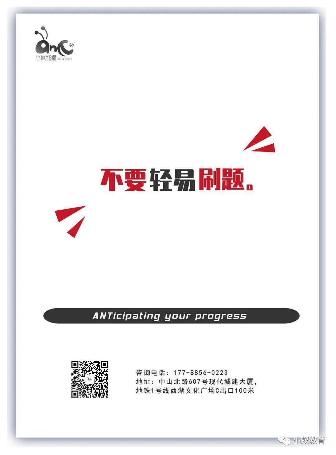 小蚁是乐观的小蚂蚁,如果5 6月的托福真的取消,尽管小蚁也觉得非常麻烦,但是反过来想想: