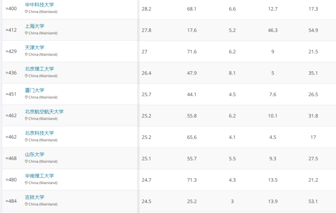 不仅如此,中国大陆高校还有部分专业进入了排名前十(下述内容并不完整):